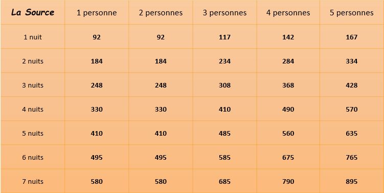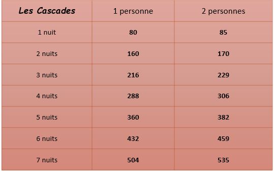 Tarifs dégressifs selon le nombre de nuitée, le petit-déjeuner ainsi que la taxe de séjour sont compris dans le prix